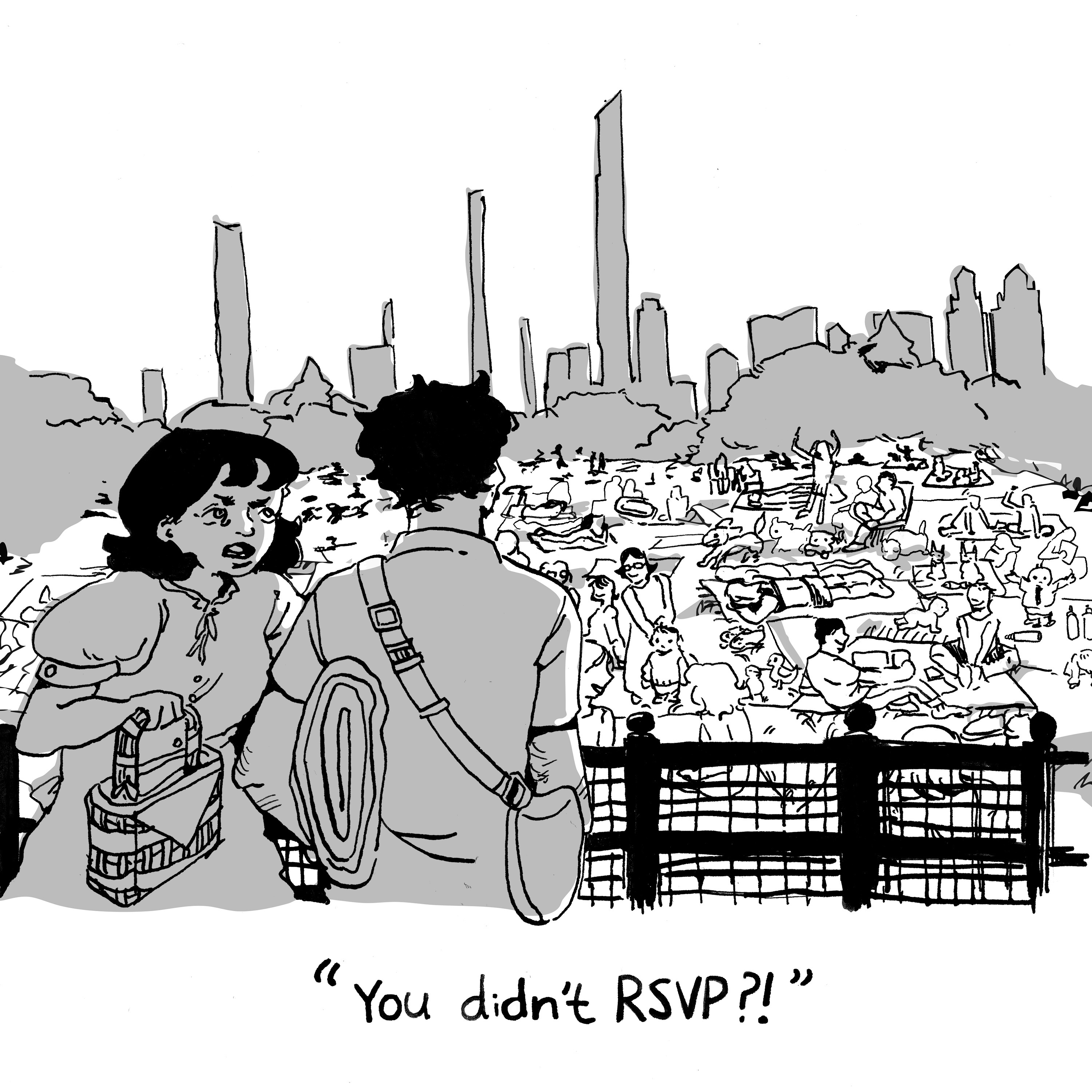 For August’s Cartoon Corner, we asked folks to draw a cartoon that evokes Summer in NYC. This month we’re featuring Caitlin Du who illustrated a universal New York experience. We’d like to title this one: Visiting The Great Lawn in August.
